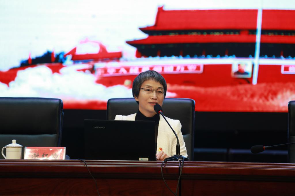 谢红岭教授以《铸牢中华民族共同体意识,推进国家统编教材使用和国家通用语言文字教育》为题,她结合工作、研究和生活实际,从民族问题和民族工作怎么看为切入点系统分析了“多元一体”“两个结合”等概念的深层含义,阐述了铸牢中华民族共同体意识的重大意义,并从加强领导、统一思想认识、完善配套方案、强化师资保障、拧紧责任链条、做好政策解读等方面详细介绍了新时代民族工作“怎么办”。