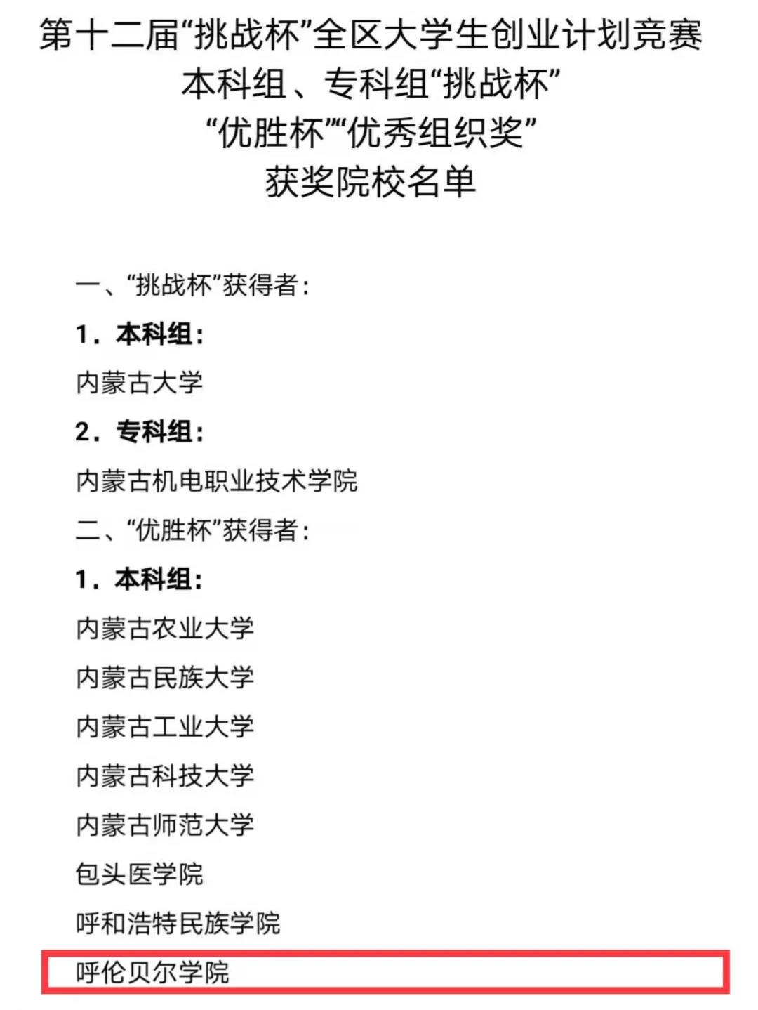 为贯彻落实国家双创工作部署,进一步引导和激励大学生创新创业能力,由共青团中央、教育部、中国科协、全国学联、黑龙江省人民政府主办,东北林业大学、共青团黑龙江省委员会承办的第十二届“挑战杯”中国大学生创业计划竞赛闭幕会在东北林业大学举行。第十二届“挑战杯”全区大学生创业计划竞赛评审结果也于近期发布,BV伟德共有1件作品入围全国赛,喜获铜奖;40件作品入围自治区大赛,33件作品获奖,喜获2个特等奖,2个一等奖,8个二等奖,21个三等奖,学校被评为“优胜杯”获奖单位,两位老师被评为“优秀工作者”。