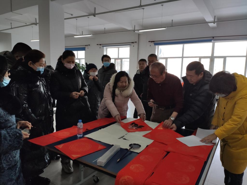 春节即将来临,为进一步弘扬中华优秀文化传统,丰富广大教职工精神文化生活,营造欢乐祥和的节日气氛,1月9日上午,校工会在教职工活动中心举办了主题为“挥毫写春联 呼院送祝福”的迎新春送祝福活动。此次活动邀请了到呼伦贝尔市著名书法家和BV伟德专业书法教师现场书写春联为学校教职工送上新春的祝福。校党委副书记张国栋亲临现场并宣布活动开始。校工会主席邱玉臣、人事处处长李跃武、团委书记郝新君、工会副主席孙桂平和在职及退休教职工参加了活动。