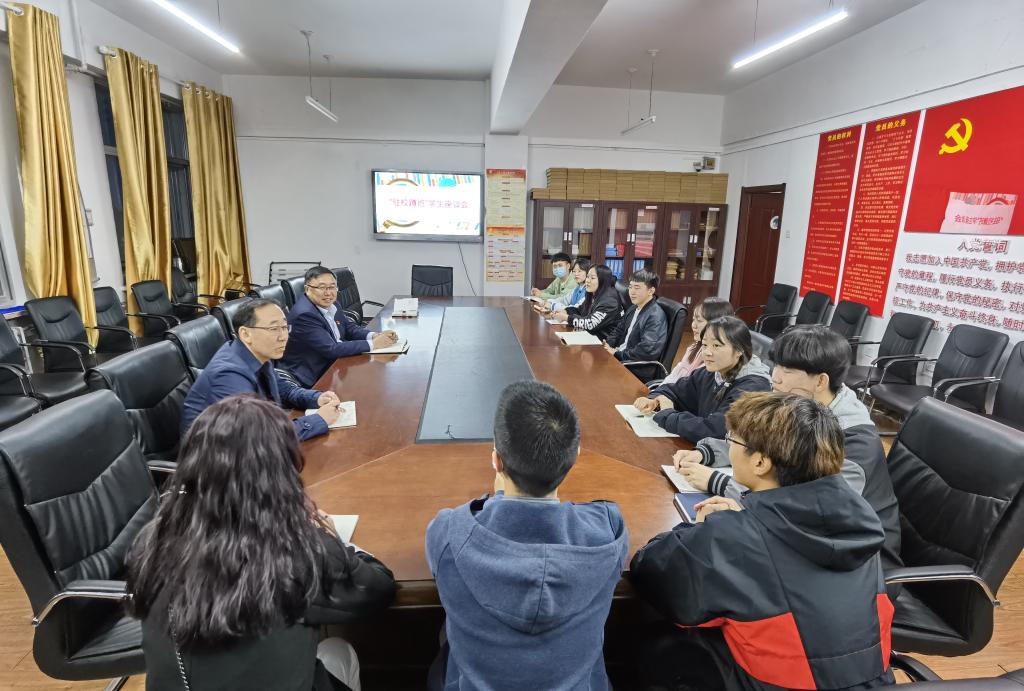 4月1日,校党委副书记张国栋深入教育学院与所联系三个班级团干部开展了“驻校蹲班”座谈会。教育学院党总支副书记海江、团学办主任吴怡参加座谈会。