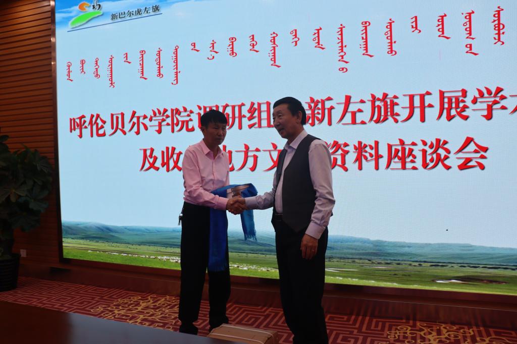 调研组在旗市政协领导和文史委员会同志们的大力支持下,收集了蒙汉文地方性文史资料200余册,并向其赠送了研究中心近几年出版的BV伟德中国官方网站民族历史文化研究丛书等学术成果,拜访慰问了相关本土专家和文化界名人,还观看了当地的文史馆、博物馆和民族团结进步展览等。