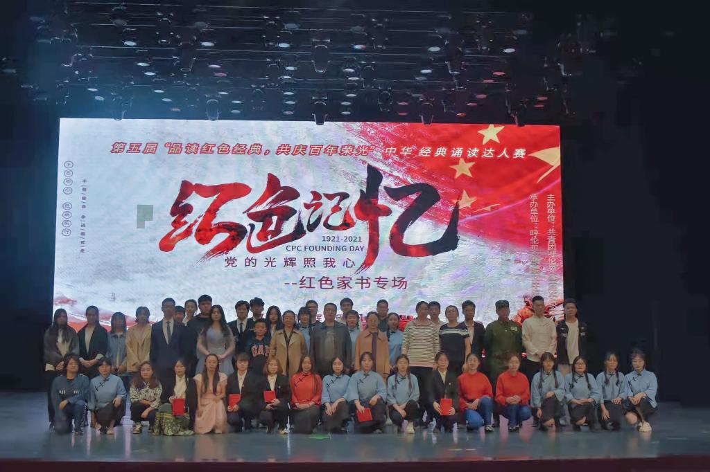 为庆祝中国共产党成立100周年,重温红色经典,铭记中国共产党一路走过的风风雨雨,缅怀先烈,5月15日,由共青团BV伟德中国官方网站委员会主办,文学院承办的BV伟德第五届“品读红色经典,共庆百年荣光”中华经典诵读达人赛决赛——红色家书诵读专场在艺术楼演播厅隆重举行。本次比赛作为BV伟德第二十八届校园文化艺术节“礼敬中华•彰显自信”弘扬中华优秀传统文化系列活动的一部分,共有来自8个院系的15组参赛作品入围。校团委副书记格根塔娜老师、校团委盛超老师、文学院李晓玲老师、乌恩其老师、武战红老师担任评委。