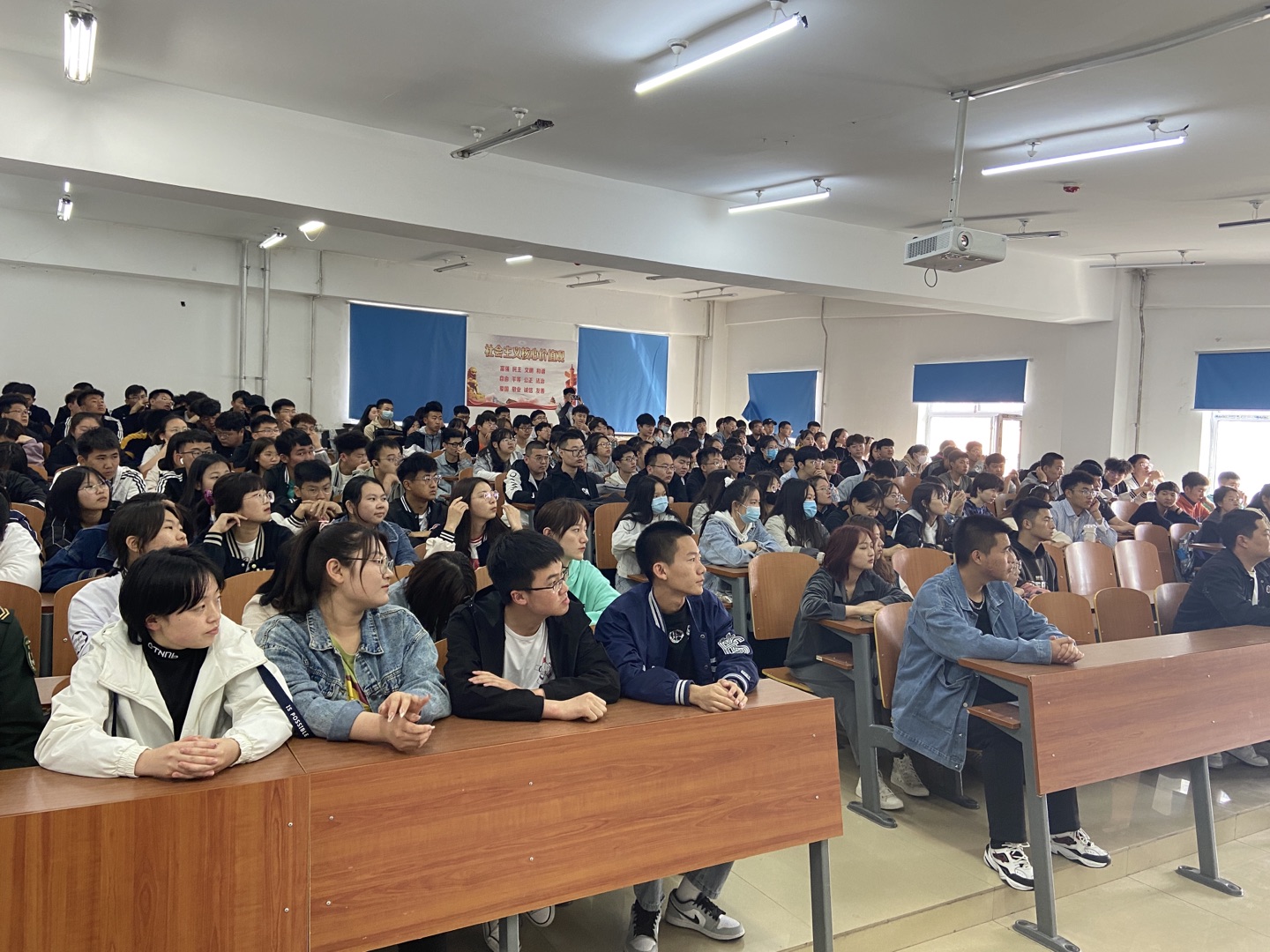 5月14日,学生工作处在科技楼323多媒体教室举办第三十四期大学生成长论坛。本期成长论坛结合全校征兵宣传工作,邀请退伍军人代表经济管理学院2019级涂董楠同学和民兵应急营学生代表外国语学院2019级武雅文同学主讲。学生工作处思想政治教育科科长谢春辉、武装部办公室主任张乐及教师于泽、张宏斌和来自计算机学院、物理与电子信息学院、化学化工学院、数学与统计学院近200多名同学参加了讲座。