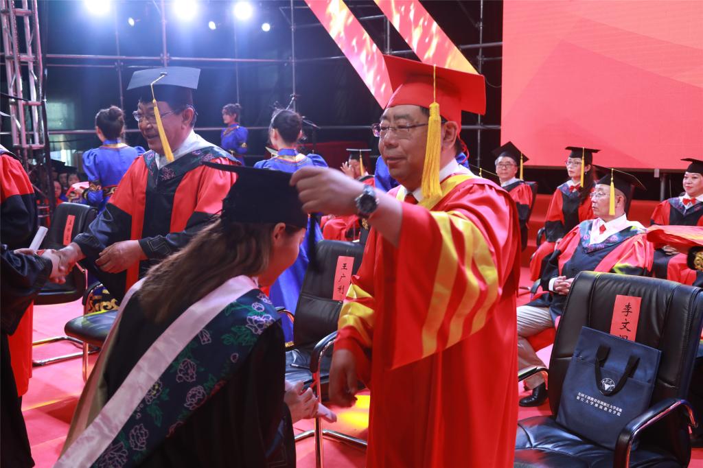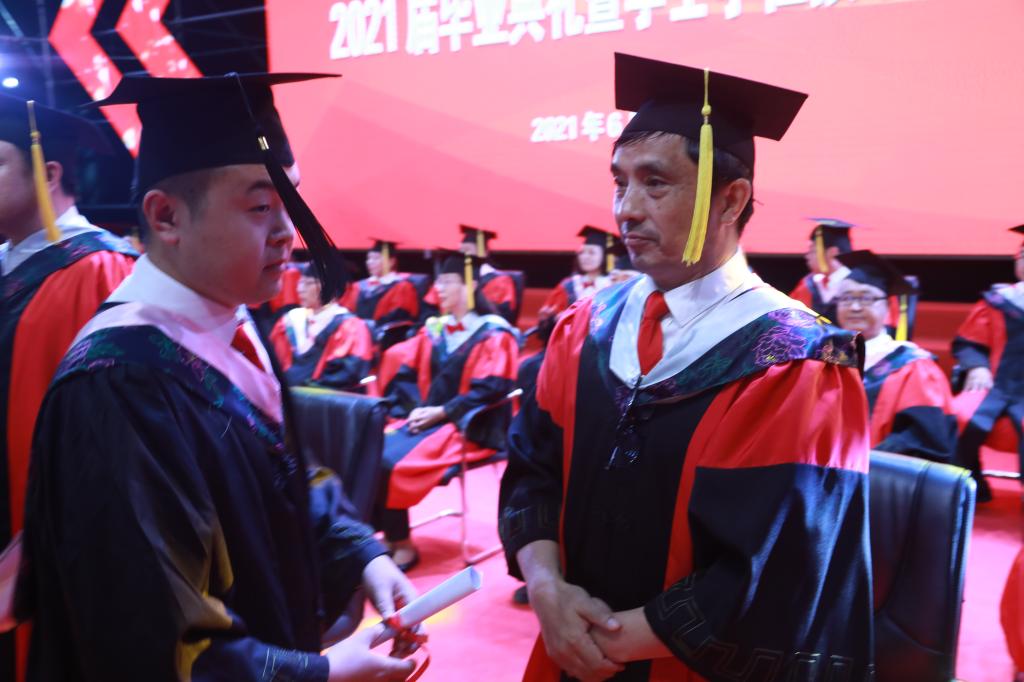 典礼在庄严的国歌声中拉开帷幕。敖特根副校长宣读了2021届本、专科毕业生名单、授予学士学位人员名单和双学士学位人员名单。学校领导为获得毕业证的本专科毕业生代表颁发毕业证书。学校领导和学士学位委员会委员为获得学士学位的毕业生代表拨穗正冠、授予学位。