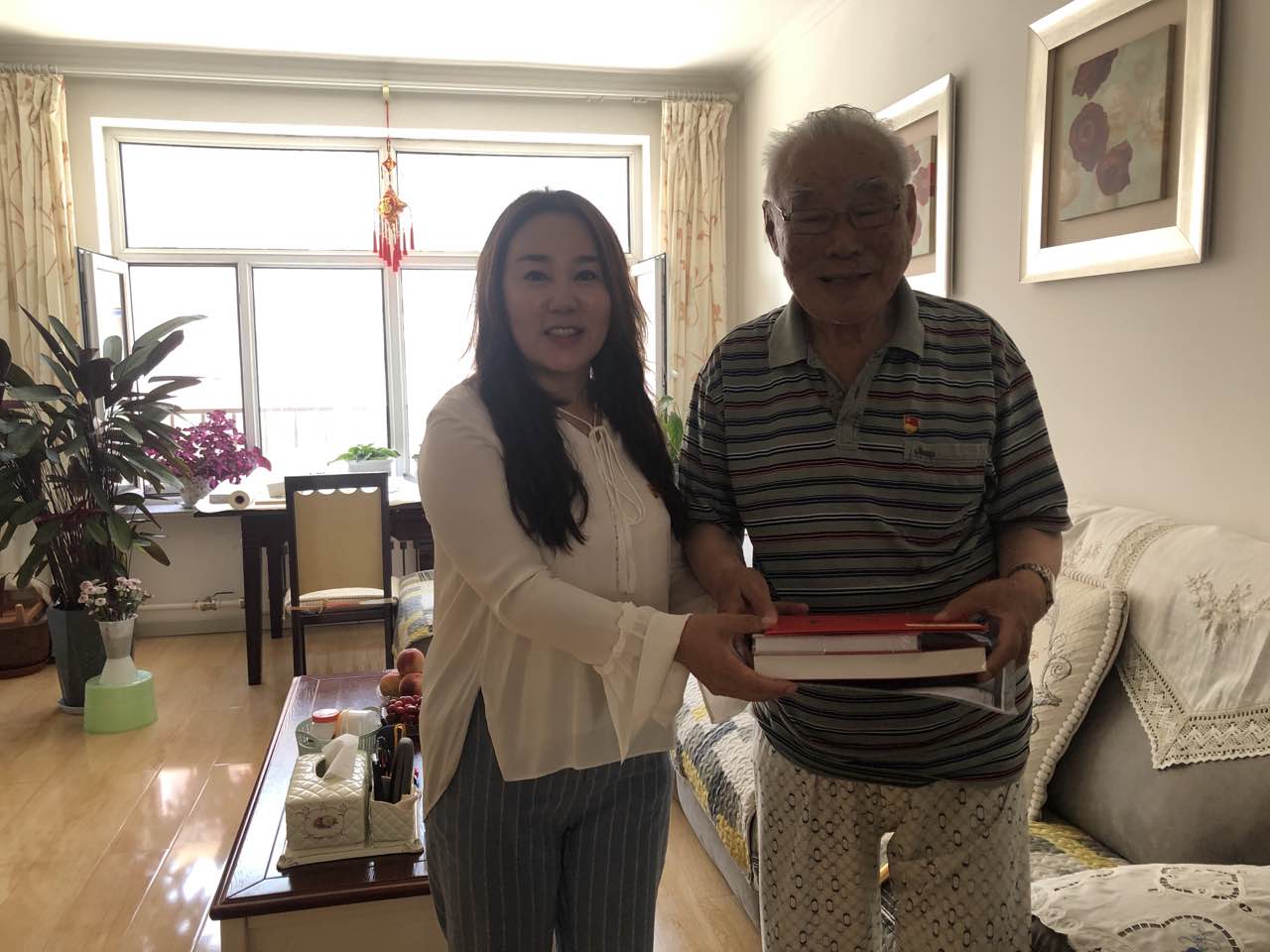 党委副书记、校长李文阁一行来到老党员刘文轩老师家中。84岁的老党员刘文轩自1966年入党至今已有55年党龄,一生忠守教育事业。李文阁校长认真倾听老同志讲述参加革命和工作的经历,一同回顾党的光辉历程和优良传统,关切询问了老人的身体、生活状况,为他颁发“光荣在党50年”纪念章,送上慰问金和慰问信,并叮嘱老人家保重身体,祝他健康长寿。