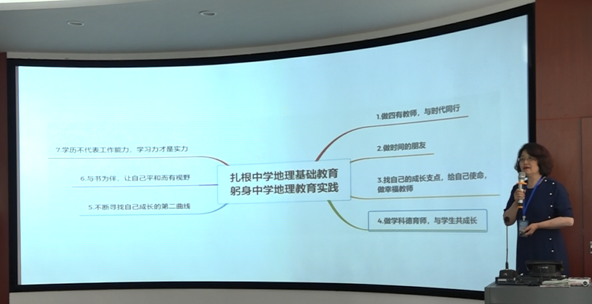 7月27日进行了中学地理教师教育学术研讨交流,共有七场报告,围绕着“地理师范生的中学地理教学设计能力培养,地理师范专业认证;中学地理教师专业发展成功案例分享;现代教育技术与中学地理教学装备的运用”等内容进行了交流。