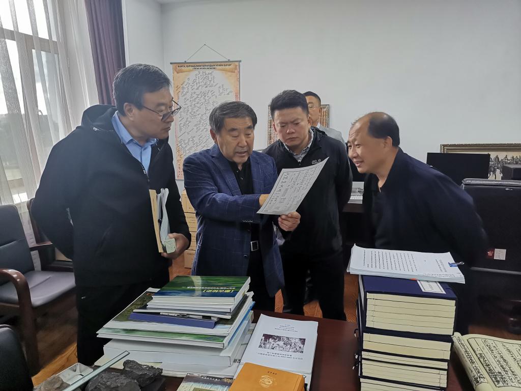 与会专家听取呼伦贝尔历史文化遗产与中华民族交往交流交融研究基地建设规划汇报后参观了蒙古族族源研究中心。中心负责人孟松林向自治区教育厅领导和与会专家介绍了呼伦贝尔历史文化遗产和历史文化研究情况。