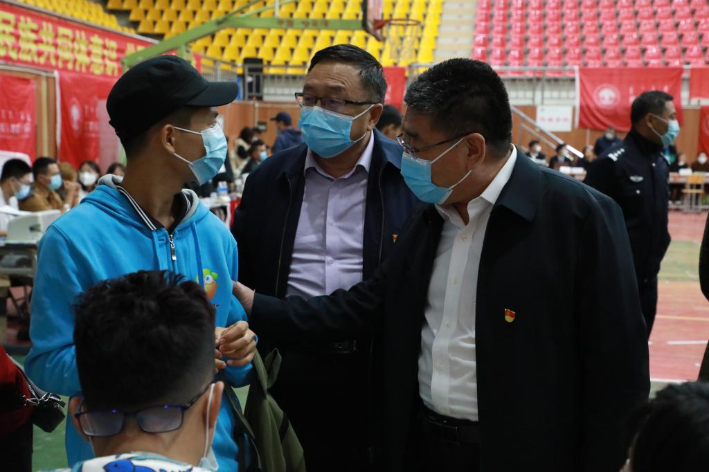 李文阁校长一行走访了各二级学院新生接待处,检查了新生入学体温检测等疫情防控情况,详细询问迎新工作进展,了解学生的报到和手续办理情况,对军训服、行李备品质量和发放情况进行查看,并对在迎新一线辛勤工作的师生员工表示慰问。李文阁校长与新生进行了亲切交谈,一一询问新生报到的感受与心情。
