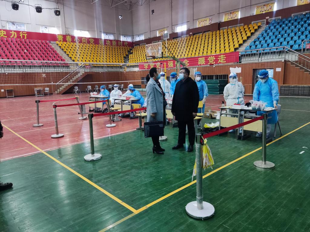 校党委副书记、疫情防控工作领导小组副组长张国栋第一时间深入一线,现场检查了疫情防控工作落实情况和核酸检测组织情况,听取了核酸检测人员范围、采样数量、计划完成时间等情况汇报,看望慰问了医护人员和志愿者。