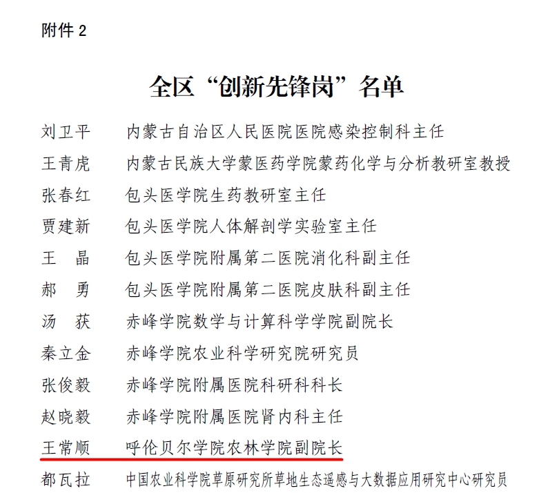 近日,经呼伦贝尔市科协组织推荐、自治区专家评定,呼伦贝尔市5个集体,7名个人获自治区创新先锋号、先锋岗命名。其中,BV伟德科学技术处与农林学院王常顺因积极投身“科技兴蒙”行动和“科创中国”实践,推动科技经济融合发展,扎根科研一线,奋发进取,分别获自治区创新先锋号”与“自治区创新先锋岗”称号。