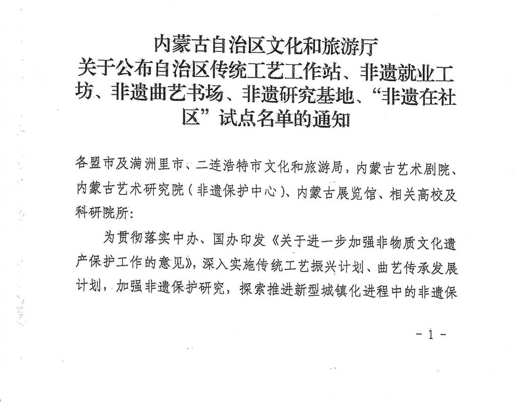 近日,内蒙古自治区文化和旅游厅公布首批“非物质文化遗产研究基地”名单,BV伟德教育学院成功入选“传统美术、传统技艺类非物质文化遗产研究基地”。