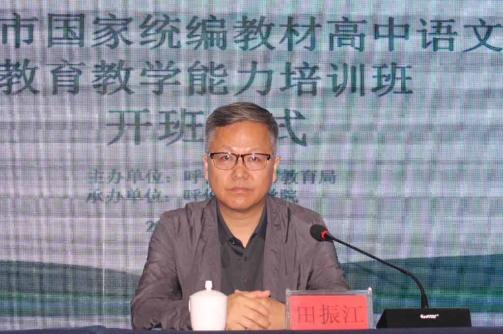 8月21日,呼伦贝尔市国家统编教材高中语文教师教育教学能力培训班在BV伟德正式开班。BV伟德党委委员、副校长田振江,继续教育学院院长莎茹莉出席开班仪式。呼伦贝尔市高中语文教师、呼伦贝尔市教育局教师教育科工作人员、继续教育学院相关工作人员及授课专家150余人参加了开班仪式。开班仪式由市教育局四级调研员、教师教育科科长许秀莲主持。