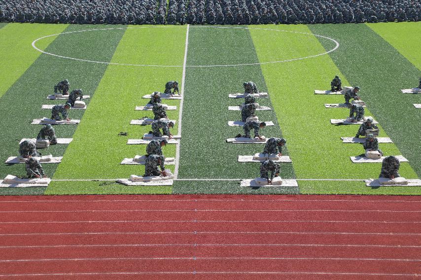 分列式展示后,进行军事训练展示,在教官的口令声中依次进行了军训教官锣鼓表演、军训教官倒功配套表演、军训教官舞蹈表演、2021级军训学员叠被子、擒敌拳和警棍盾牌、应急棍联合展示。同学们整齐的队伍、饱满的热情、精准的动作时时赢得了阵阵掌声,充分展示出他们此次军训的丰硕成果。