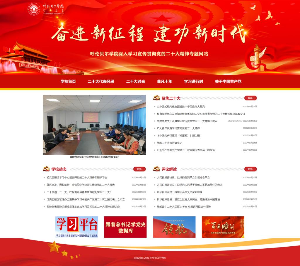 师生教职工可直接点击“BV伟德中国官方网站深入学习宣传贯彻党的二十大精神专题”网站(http://20d.hlbec.edu.cn/)进入,也可通过校园网首页下方【专题推荐】“‘二十大’专题”链接访问网站。