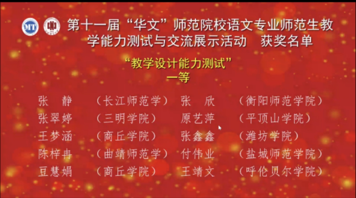 近日获悉,在中国教育技术协会微格教学专业委员会与江西师范大学联合举办的第十一届“华文”师范院校语文专业师范生教学能力测试与交流展示活动中,BV伟德4名选手在全国80所师范院校500名选手中脱颖而出,喜获佳绩。