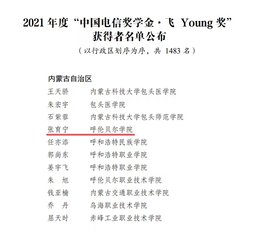 近日,由共青团中央、全国学联指导,中国电信集团有限公司、中国光华科技基金会联合举办的2021年度“中国电信奖学金”推报活动遴选结果公布,BV伟德旅游与地理学院学生张育宁荣获“中国电信奖学金•飞Young奖”。