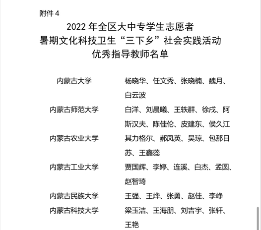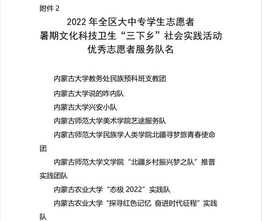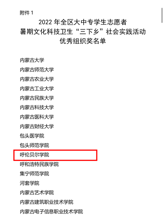 近日,自治区党委宣传部、文明办、教育厅、团委、学联联合下发了对2022年暑期文化科技卫生“三下乡”社会实践活动的总结表彰决定和荣誉证书。BV伟德荣获2022年全区大中专学生志愿者暑期文化科技卫生“三下乡”社会实践活动优秀组织奖等诸多奖项,学校多支志愿者服务队,多名指导教师、社会实践活动队员荣获表彰。