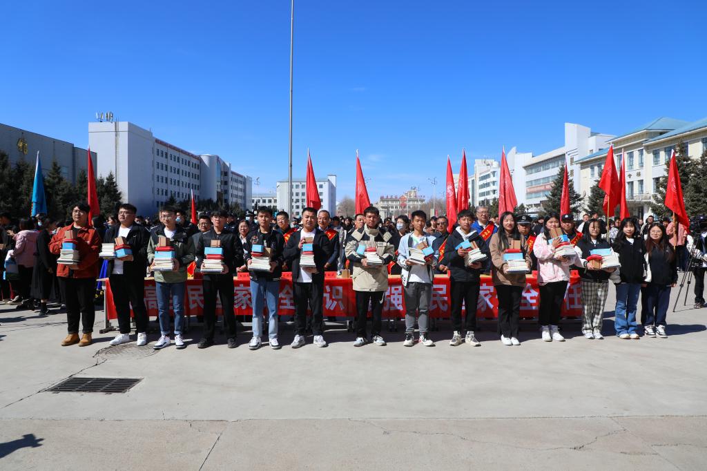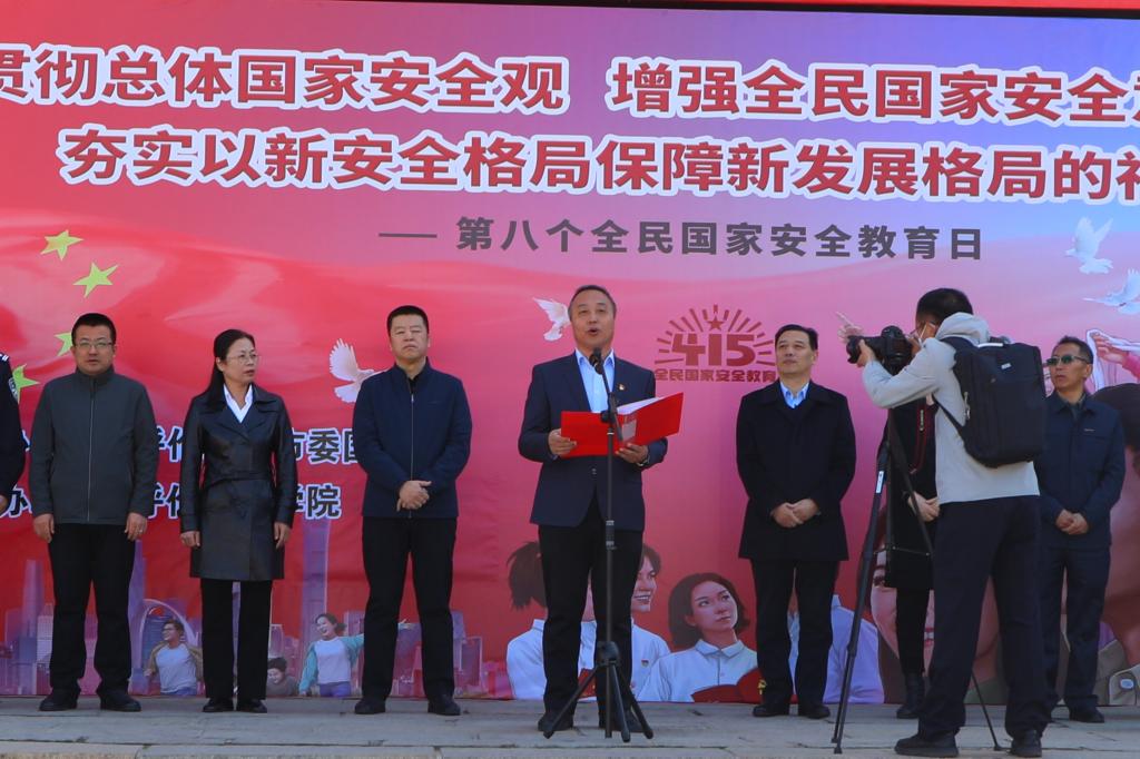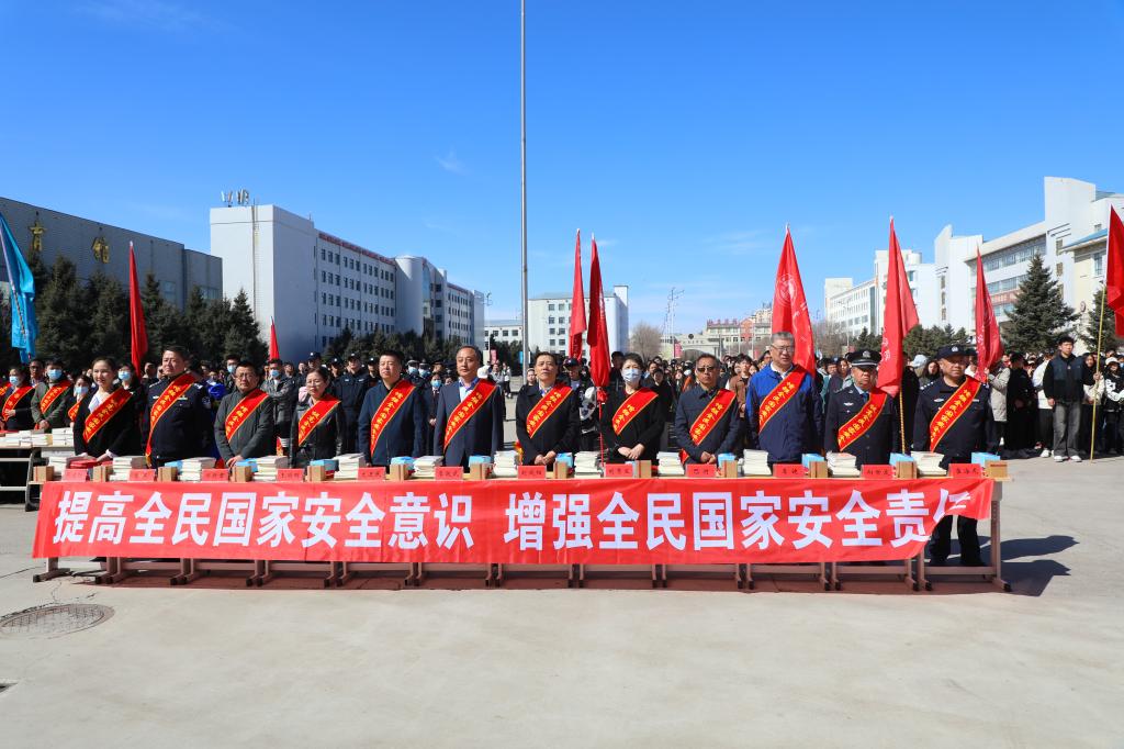 为提高全民国家安全意识,营造维护国家安全的浓厚氛围,增强全社会对贯彻落实总体国家安全观重要意义的认识,凝聚起维护国家安全的共识和力量,4月15日,BV伟德举办 “全民国家安全教育日”宣传教育系列活动启动仪式。校党委委员、副校长李跃武及学校相关部门人员、呼伦贝尔市委国安办、呼伦贝尔市国家安全局、呼伦贝尔市公安局反恐怖和特巡警支队、海拉尔公安分局负责人及学生代表共1100余人参加了启动仪式。
