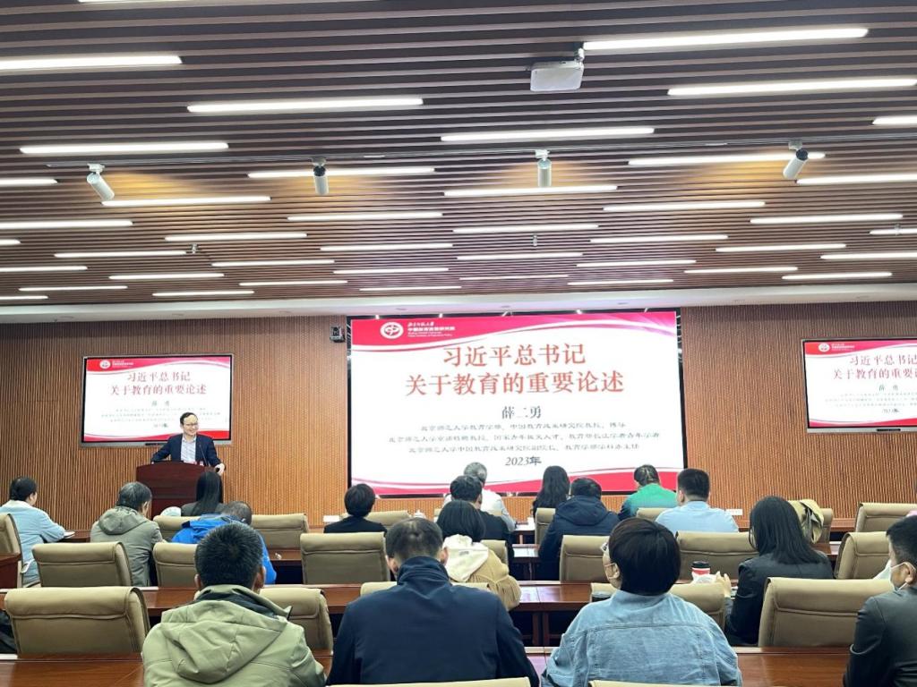 在22日的讲座中,薛二勇教授指出我国建设教育强国,实现教育现代化,必须以习近平总书记关于教育的重要论述为指导思想。新时代教育改革的总体方案要落实到高校的日常教育教学中,这需要每个教育工作者把握好原则和方法,自觉主动地学习习近平总书记关于教育的重要论述。随后,薛二勇教授结合自身学习体会,从目的论、方法论、主体论、价值论四个方面,阐释了“培养什么人”“怎样培养人”“谁来培养人”“为谁培养人”这四个教育领域的基本问题,并指出教育发展和完善的过程具有长期性,因此要把理论与实践相结合,立足于中国国情办教育。