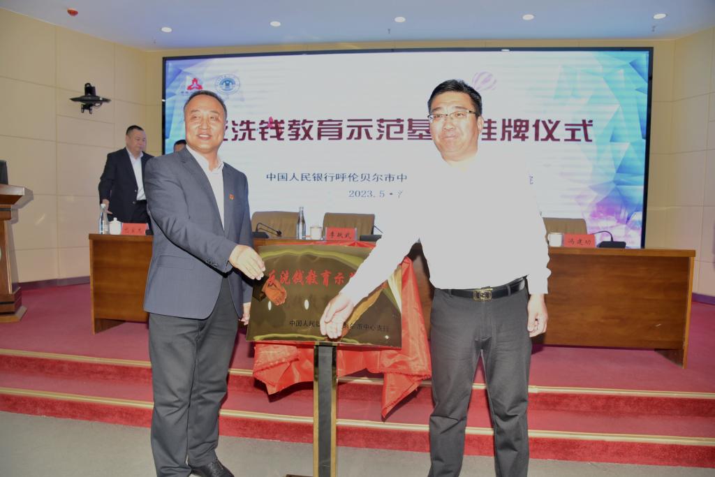 随后,李跃武副校长和王晓峰行长共同为呼伦贝尔市反洗钱教育示范基地挂牌。