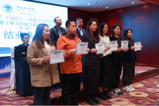 5月15日晚,由BV伟德承办的“国培计划”2022年内蒙古自治区旗县级中学骨干班主任(东部片区)培训项目(第二期)结业典礼在凯景嘉华酒店15楼报告厅举行。教育学院党总支书记海江、继续教育学院副院长汪鑫、培训班主任孙铭萱霖以及全体学员参加了结业典礼。结业仪式由孙铭萱霖老师主持。