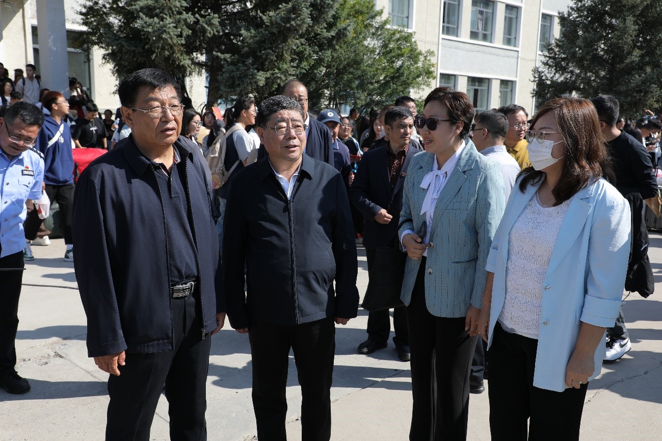 9月1日上午,校党委书记王广利,党委副书记、校长李文阁,党委副书记张宏天,党委委员、纪委书记岳勇,党委委员、副校长敖特根、高乐深入新生报到现场走访调研。