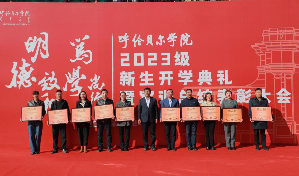 会上,王广利、张宏天、岳勇分别为获得本次军训“先进单位”“特别贡献单位”荣誉称号的二级学院领导,2023级新生军训队伍队列、内务卫生、出勤、文体活动优秀单位代表,2023级新生军训优秀学员、优秀指导教师和优秀教官代表颁奖。随后,校领导为新生代表佩戴校徽。