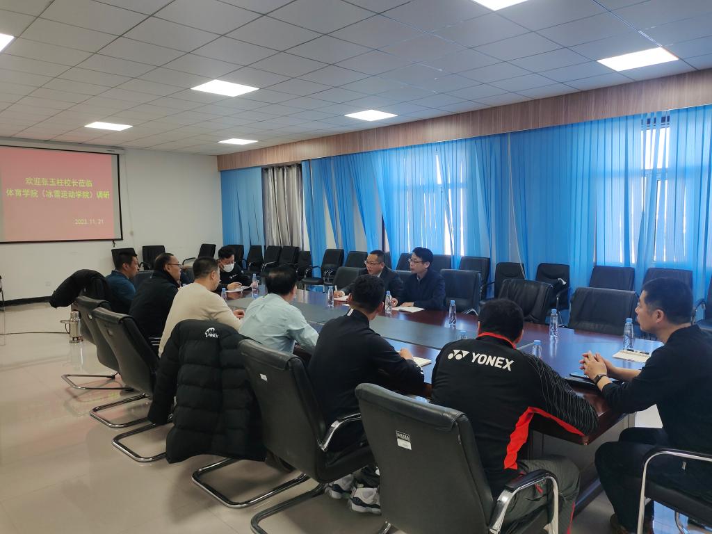 11月21日上午,校党委副书记、校长张玉柱深入体育学院(冰雪运动学院)开展调研。体育学院领导班子成员、环节干部和各系部主任参加调研会。