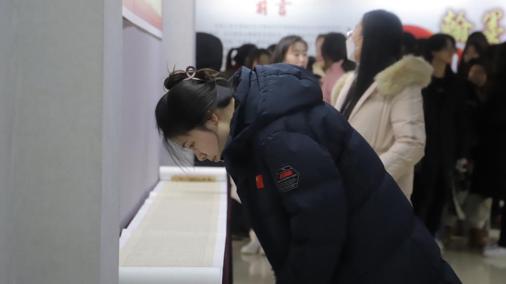 张宏天在致辞中表示,本次书法展是深入学习贯彻习近平新时代中国特色社会主义思想和党的二十大精神,是传承中华民族优秀文化、培养师生爱党爱国情怀的重要途径。书以言志、翰墨传情,呼院师生将对党始终如一的感恩之情融于笔端,昂扬向上的精神风貌映于纸上。书法展的成功举办将进一步激励党员干部铸魂增智育新人,正风促干书新篇,引导广大师生不忘初心感党恩、矢志不渝听党话、坚定不移跟党走。