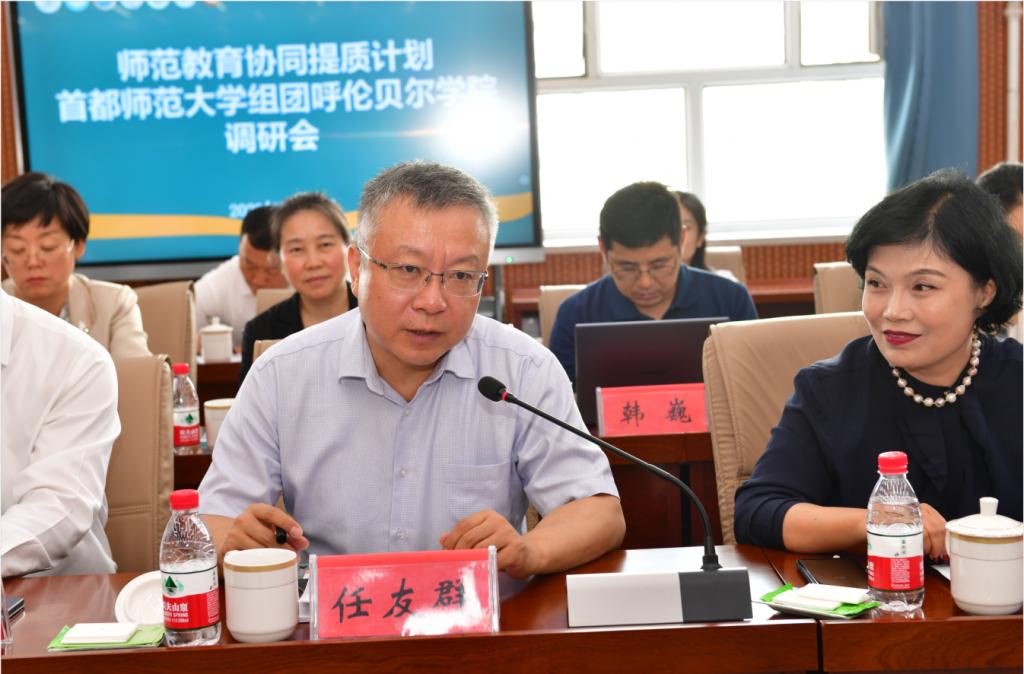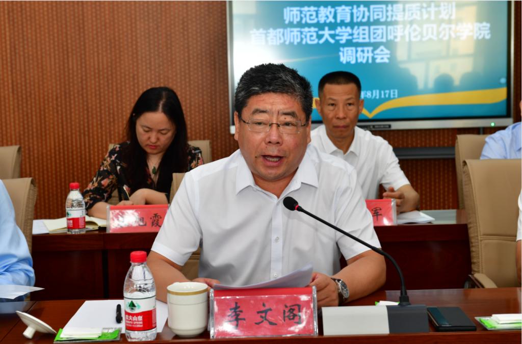 随后,在崇文楼A座501会议室,召开了师范教育协同提质计划首都师范大学组团BV伟德中国官方网站调研会。校党委副书记、校长李文阁,校党委委员、副校长敖特根、李跃武、尹立军,以及学校相关职能部门负责人、师范专业学院院长参加调研会,调研会由尹立军副校长主持。会前,集体观看了《踔厉奋发新时代的BV伟德中国官方网站》宣传片。