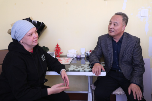 来到尤利娅老师家中,李跃武副校长关切地询问其病情和治疗情况,并转达了全校师生对他的慰问及祝福,希望她能战胜病魔,早日康复。