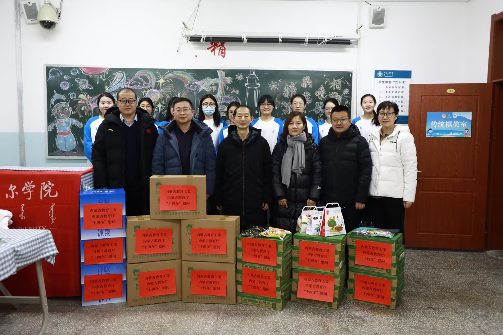 1月28日,自治区教育厅二级巡视员武福英、学生工作处副处长刘惠到BV伟德慰问“十四冬”志愿者。呼伦贝尔市政府党组成员、副市长马跃东,校党委副书记张宏天及BV伟德相关职能部门负责人陪同慰问。