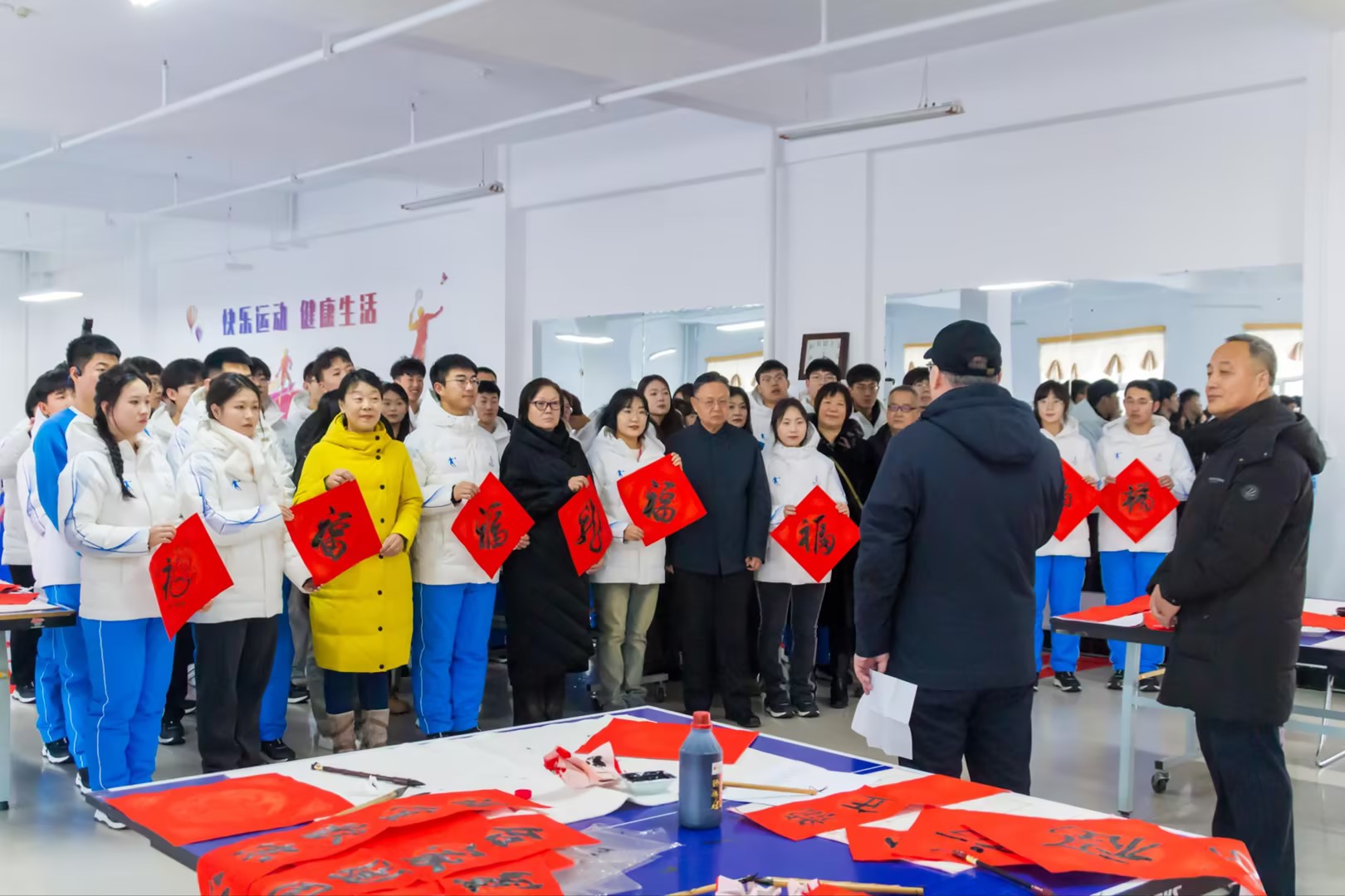 随着春节的临近,为了弘扬传统文化,营造浓厚的节日氛围,校团委、老教授协会共同举办了一场别开生面的“新春送暖寄笔端”师生联谊活动。校党委委员、副校长李跃武,校团委书记王晓芳、离退休工作处处长孙桂平及相关部门领导和教师参加活动。本次活动邀请了校内多位资深教授与BV伟德“十四冬”志愿者共同参与,通过书写对联这一传统形式,共同迎接新春佳节的到来。