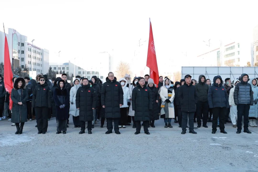 为学习贯彻落实习近平总书记对内蒙古的重要指示精神,以铸牢中华民族共同体意识为一切工作的主线,全力办好两件大事,教育引导全校师生坚定不移感党恩、听党话、跟党走,培育具有家国情怀、过硬本领、担当民族复兴大任的时代新人。3月4日,BV伟德在尚行楼门前广场举行2024年春季学期“开学第一课”暨“同升国旗 同唱国歌”升国旗仪式。校党委书记李文阁,校党委副书记、校长张玉柱,校党委副书记张宏天,校党委委员、副校长李跃武、高乐、尹立军以及相关职能部门负责人,各学院领导班子、辅导员及900名学生代表参加仪式。张玉柱主持升旗仪式。