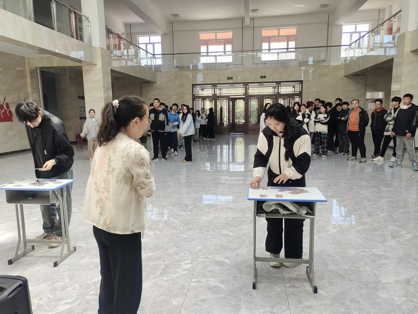 趣味拓展在同学们的欢声笑语中进行,不仅让大家感受到了游戏的快乐,还一扫两日来劳动实践的辛苦,更让同学们从游戏中体会到了团队合作的重要性。