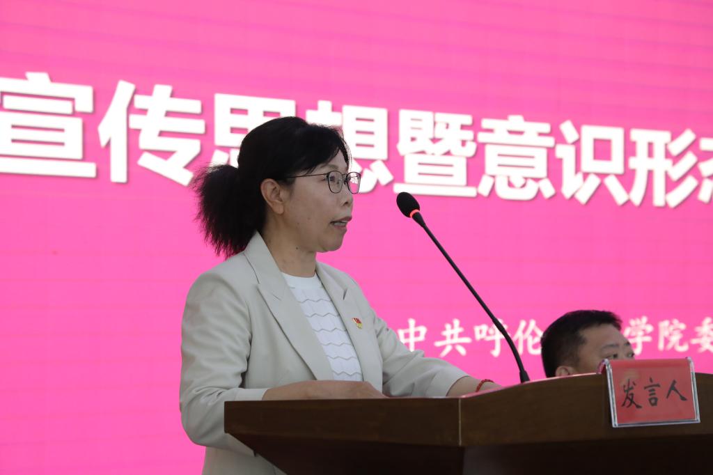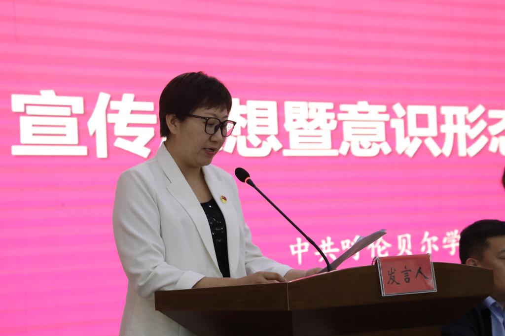 党委宣传部副部长白玫对学校2023年宣传思想及意识形态工作进行总结,并安排部署2024年重点工作。