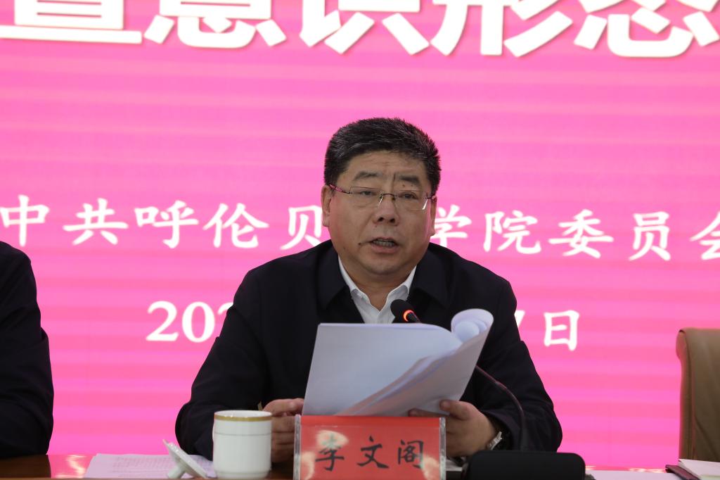 李文阁强调,全校各级党组织要把做好宣传思想和意识形态工作作为重大政治责任扛在肩上,带头把方向、抓导向、管阵地、强队伍,坚持正确政治方向,站稳政治立场,守好宣传思想文化主阵地。