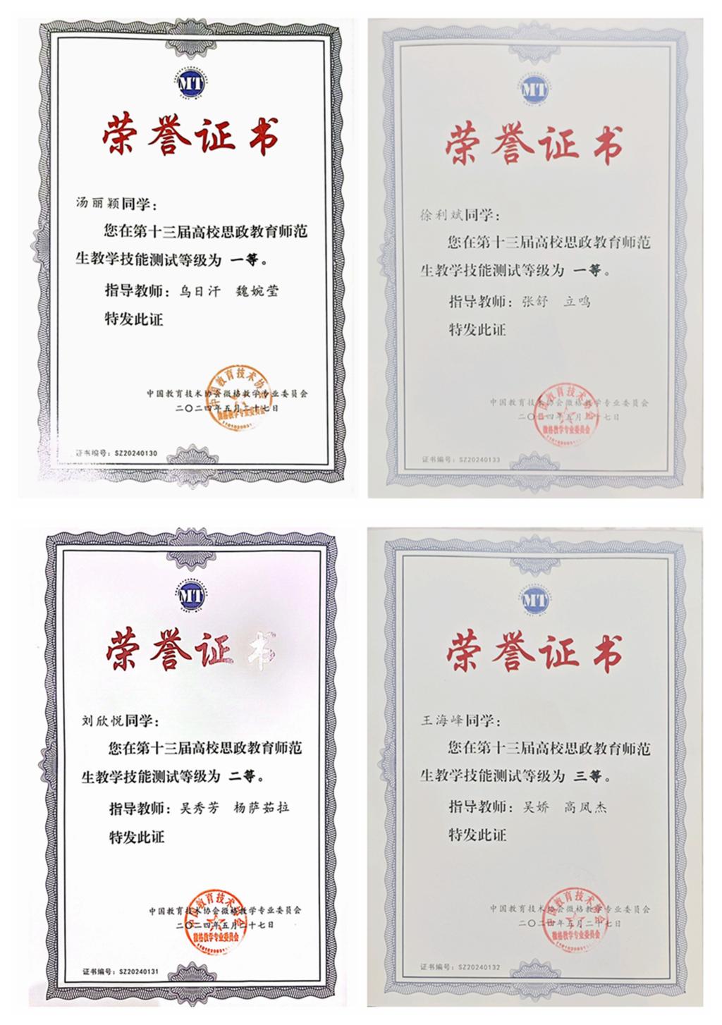 5月24日至27日,2024年思政教育微格教学论坛暨第十三届高校思政教育师范生教学技能测试与交流展示活动在四川成都顺利举行。此次展示活动由中国教育技术协会微格教学专业委员会主办,四川师范大学承办。西南大学、华中师范大学、陕西师范大学等全国近百所高校的547名选手参加了本届高校思政教育师范生教学技能测试与交流展示活动。BV伟德由马克思主义学院杨萨茹拉和立鸣两位老师带队,刘欣悦、汤丽颖、徐利斌、王海峰等四名学生参加展示活动。