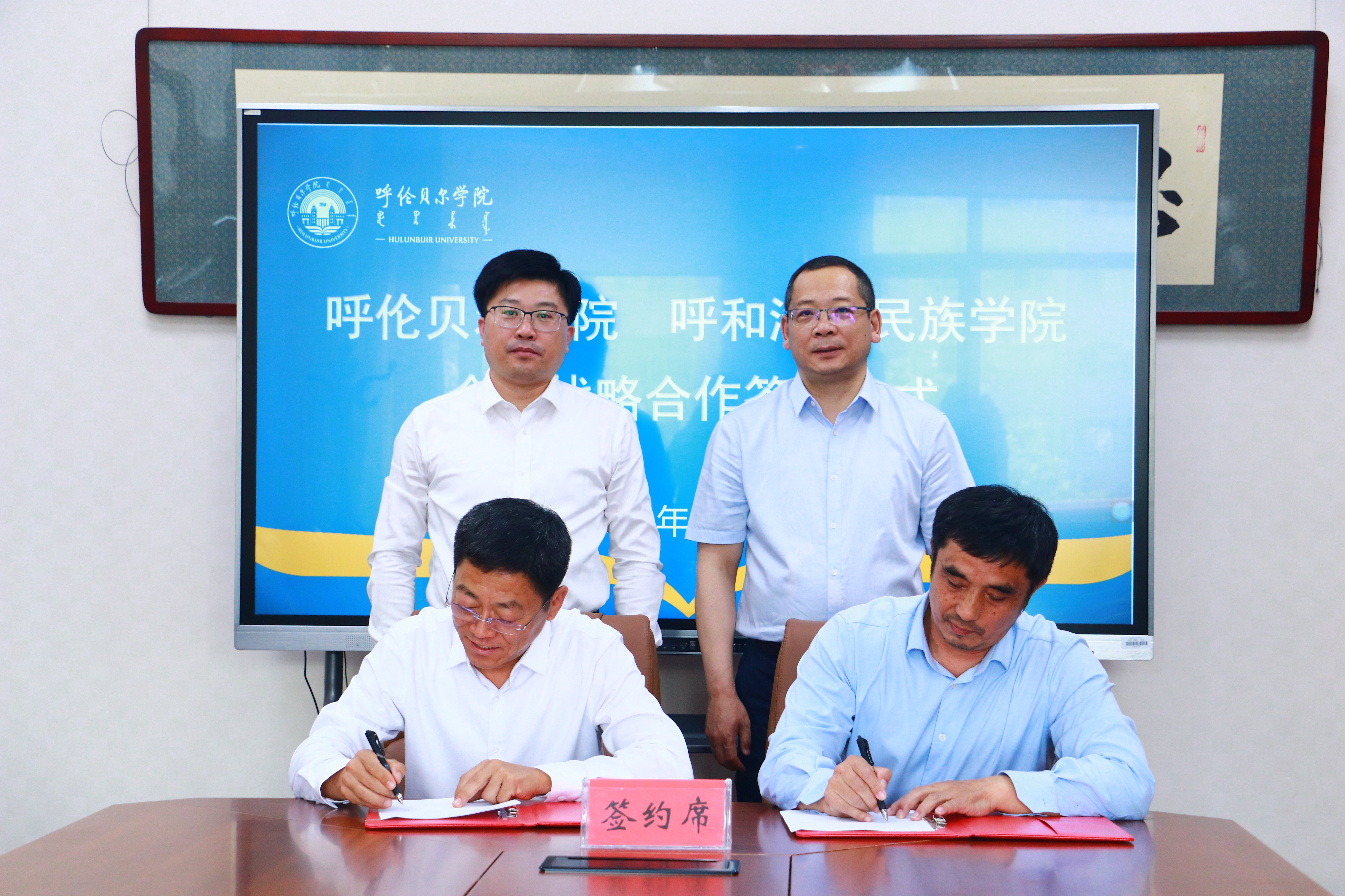 6月14日下午,BV伟德中国官方网站与呼和浩特民族学院全面战略合作签约仪式在逸夫楼319会议室举行。BV伟德中国官方网站党委副书记、校长张玉柱,校党委委员、副校长敖特根,呼和浩特民族学院党委副书记、校长韩伟新,校党委委员、副校长高喜天出席签约仪式,两校相关部门负责人参加了签约仪式,仪式由敖特根主持。