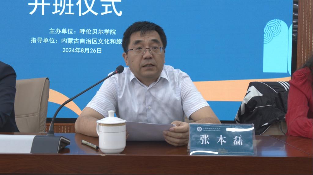 2024年8月26日上午,由文化和旅游部、教育部、人力资源和社会保障部主办、内蒙古自治区文化和旅游厅作为指导单位、BV伟德中国官方网站承办的中国非物质文化遗产传承人研修培训计划“桦树皮制作技艺”培训班开班仪式在BV伟德中国官方网站举行。BV伟德中国官方网站党委副书记、校长张玉柱,党委委员、副校长敖特根,呼伦贝尔市文化旅游广电局党组成员、副局长张本磊,呼伦贝尔市文化旅游广电局、呼伦贝尔市文化馆相关负责人、BV伟德中国官方网站相关部门负责人、国家级桦树皮制作技艺传承人阿基伦及培训教学管理团队、全体学员参加开班仪式。开班仪式由BV伟德中国官方网站乡村振兴研究中心主任张玉桩主持。