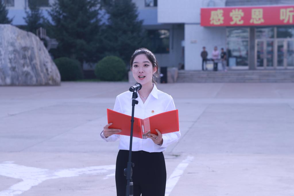 马克思主义学院学生张宇倩作为学生代表进行国旗下的演讲,她号召青年学子将爱国主义情怀融入学习和生活中,努力成为有理想、有本领、有担当的时代新人,以实现中华民族伟大复兴的中国梦为己任,胸怀天下,志存高远,把个人的理想追求与国家的前途命运紧密相连。