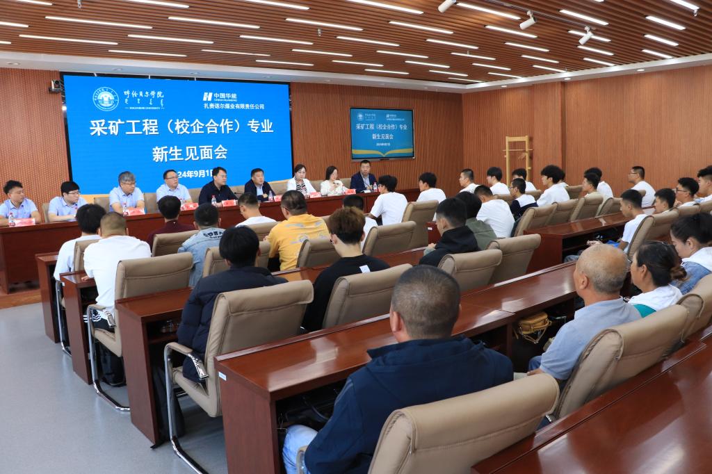 9月1日,采矿工程(校企合作)专业新生见面会在崇文楼A座501会议室举行。BV伟德党委委员、副校长尹立军,招生就业处处长赵小花,矿业与化学化工学院党总支书记张阳、院长郭文彬,扎赉诺尔煤业有限责任公司(以下简称扎煤公司)董事长、党委书记崔义,扎煤公司人资部主任赵建辉、副主任张健,两个单位工作人员和2024级采矿工程(校企合作)专业新生以及部分家长代表参加了会议。