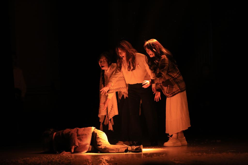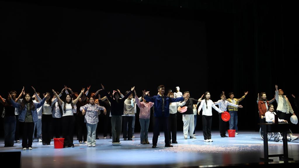 为讲好教师的故事,呈现高质量的作品,在学校党委和行政的大力支持下,从2023年12月开始筹备策划,邀请全国十四冬誓师大会总导演黄伟、乌仁朝鲁门倾情加盟,邀请上海戏剧学院团队设计和制作服装、道具。历时2个月进行采风和剧本创作,深入挖掘典型人物故事,打磨完善剧本、遴选演员,邀请行业专家对剧本审读,演出单位为文学院“原上鹰”话剧团,参演人员教师6人,学生33人,全程排演时间历时半个月。