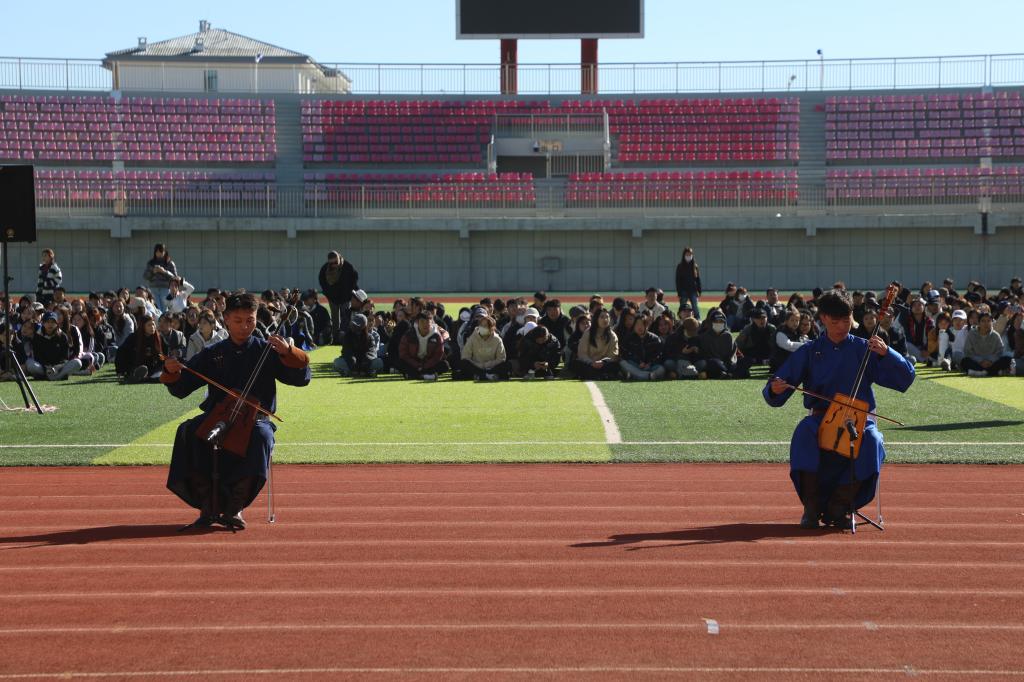 郝晓宽致辞,他提到,广大师生要将弘扬蒙古马精神与铸牢中华民族共同体意识相融合,将草原文化与校园文化相融合,扩大民族传统体育活动的覆盖面和影响力,共建共享民族团结和谐校园。