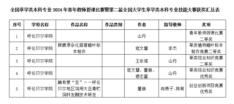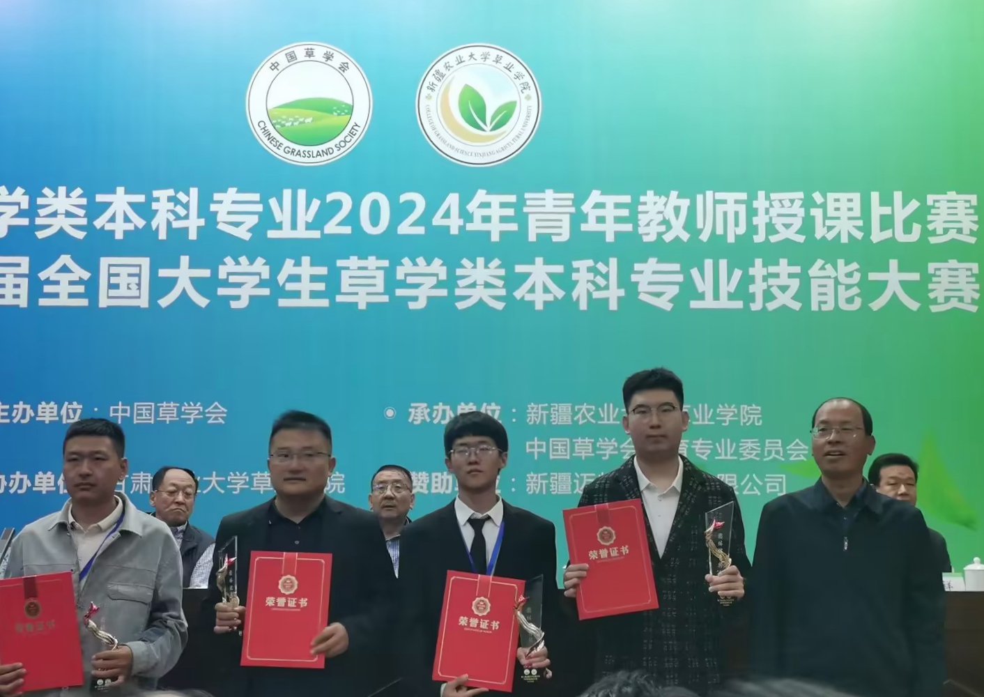 9月21日至22日,全国草学类本科专业2024年青年教师授课比赛暨第二届全国大学生草学类本科专业技能大赛在新疆维吾尔自治区乌鲁木齐市召开,BV伟德农学院山丹老师荣获本次青年教师授课比赛二等奖;农学院山丹、李杰两位老师带领2021级草业科学班寇文慧、2022级草业科学班王依诺、董赫、穆志富等组成的代表队荣获大赛团体优秀奖;寇文慧同学的作品《辉腾原杂化苜蓿蜡叶标本制作》在草类植物蜡叶标本制作竞赛中荣获二等奖;王依诺同学在草类综合知识竞赛中荣获二等奖,寇文慧、董赫、穆志富获得优秀奖;王依诺同学在草类植物种子识别与净度分析竞赛中荣获优秀奖;董赫同学的《酶有爱“豆”——呼伦贝尔地区饲用大豆青贮饲料发酵技术研发》在创业创新项目竞赛中荣获优秀奖。