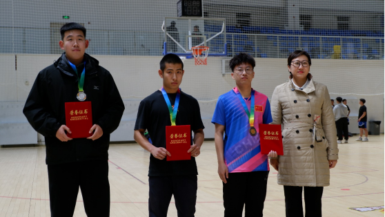 在男子单打比赛项目中,体育学院(冰雪运动学院)的李兆峰同学获得冠军,法学与经济管理学院的王彦凯同学获得亚军,法学与经济管理学院的刘凯同学获得季军。