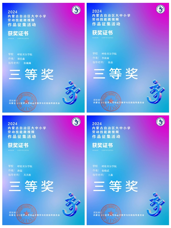 为进一步传播劳动思想、传承劳动精神、学习劳动技能,教育引导学生崇尚劳动、尊重劳动,近日,由内蒙古自治区教育厅主办,内蒙古自治区学校劳动教育教学与实践指导委员会、内蒙古广播电视台承办的全区大中小学劳动技能微视频作品征集活动落下帷幕,BV伟德共有4名同学荣获“普通高等学校组”三等奖的好成绩。