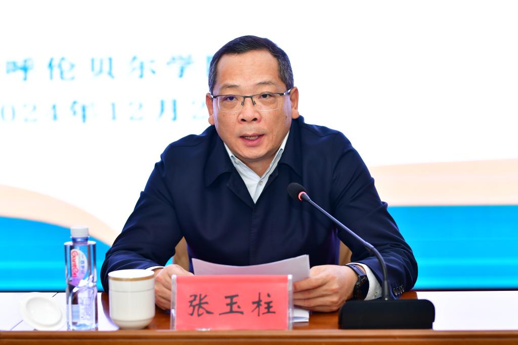 张玉柱在致辞中表示,呼伦贝尔市北疆文化研究基地的成立,是深入贯彻习近平文化思想,积极响应国家文化发展战略的重要举措。基地将依托丰富的学术资源和研究力量,致力于北疆文化的深入挖掘、系统整理和创新传承。将以铸牢中华民族共同体意识为主线,围绕北疆文化的历史渊源、文化内涵、时代价值等方面开展深入研究,为推动北疆文化的繁荣发展贡献智慧和力量。在未来的工作中将秉持“开放、合作、共享”的理念,加强与相关学术机构和专家学者的交流与合作,共同推动北疆文化研究领域的学术繁荣和成果共享。同时,还将注重将研究成果转化为社会生产力,为地方经济社会发展提供有力的文化支撑和智力支持。