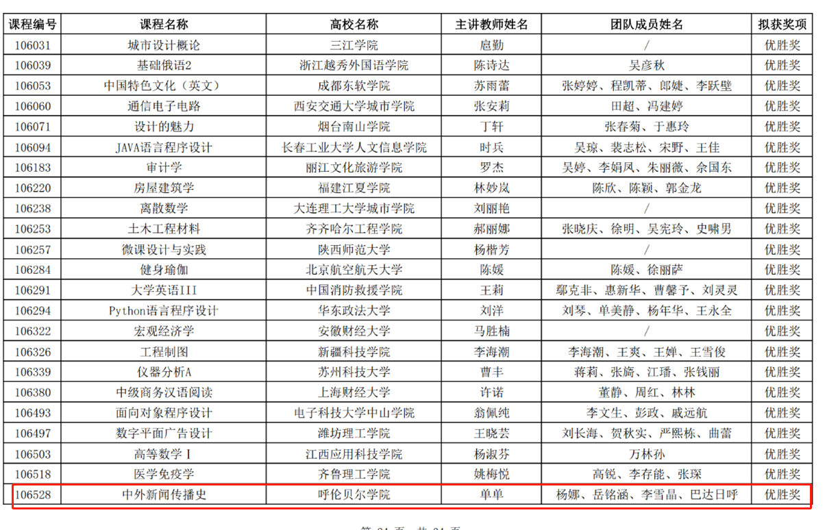 本届比赛有来自全国各高校的数千余门课程通过线上参赛,竞争异常激烈。在激烈的角逐中,BV伟德《大学英语AI》韩丽伟团队凭借出色的教学设计与实践,荣获全国三等奖,充分展示了学校在英语教学改革方面的创新成果。同时,《中外新闻传播史》单单团队和《教育心理学》梁静团队也凭借各自在混合式教学中的独特见解和实践经验,荣获优胜奖,为学校赢得了荣誉。