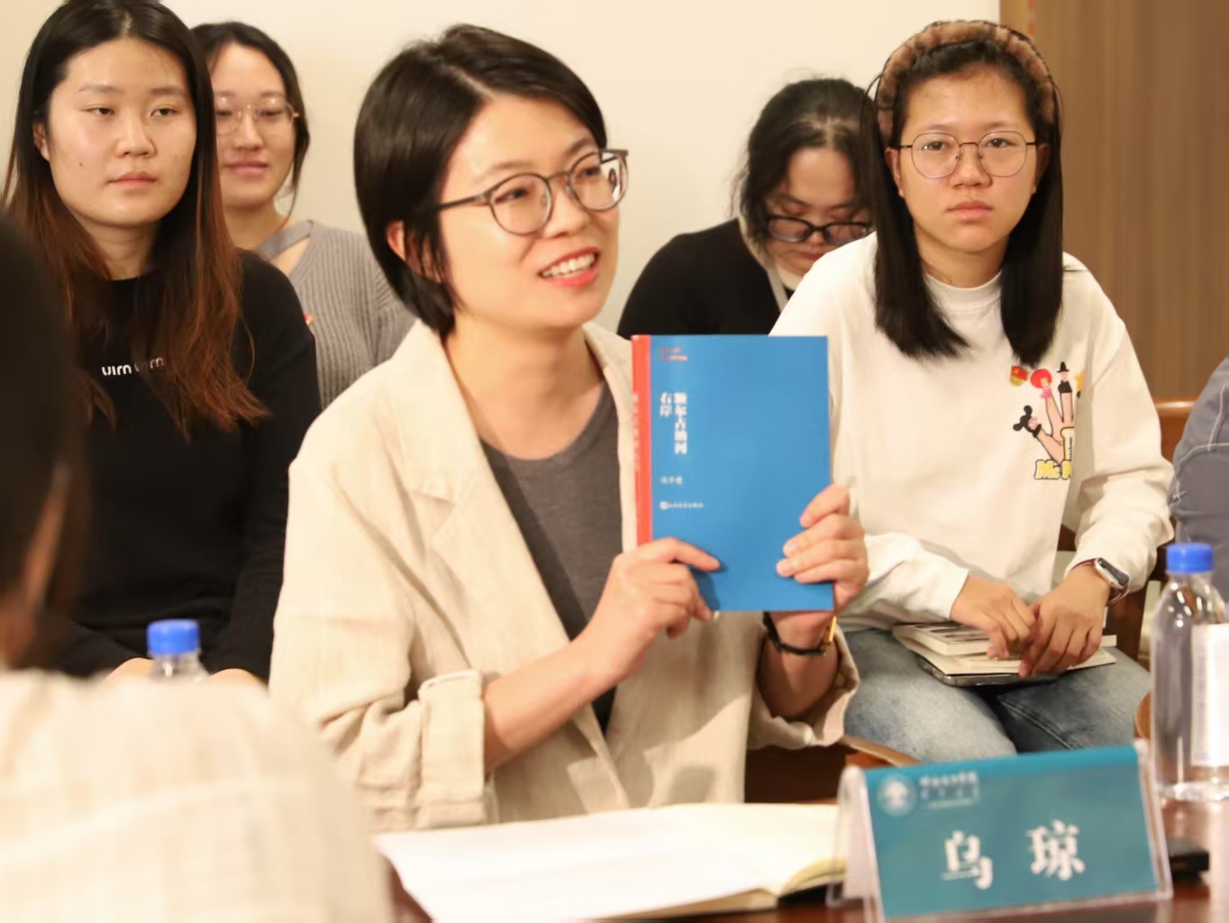 互动环节将活动推向高潮。特邀嘉宾乌琼,与现场师生围绕迟子建笔下鄂温克族的命运展开深度对话。乌琼不仅分享了自己阅读该书的独特感悟,还结合自身丰富的文学经验,为师生推荐了其他相关的优秀文学作品,拓宽了大家的阅读视野。